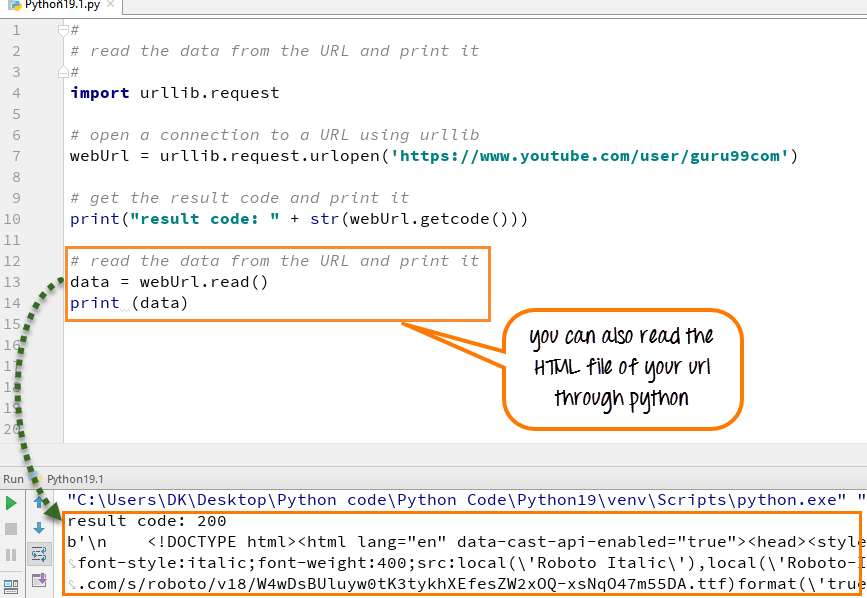 Before we run the code to connect to Internet data, we need to import statement for URL library module or "urllib".