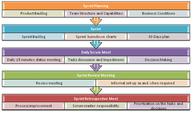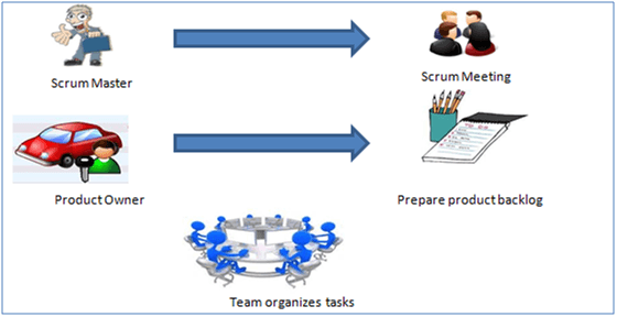 SCRUM is an agile development method which concentrates specifically on how to manage tasks within a team-based development environment. Basically, Scrum is derived from activity that occurs during a rugby match. Scrum believes in empowering the development team and advocates working in small teams (say- 7 to 9 members). It consists of three roles, and their responsibilities are explained as follows: