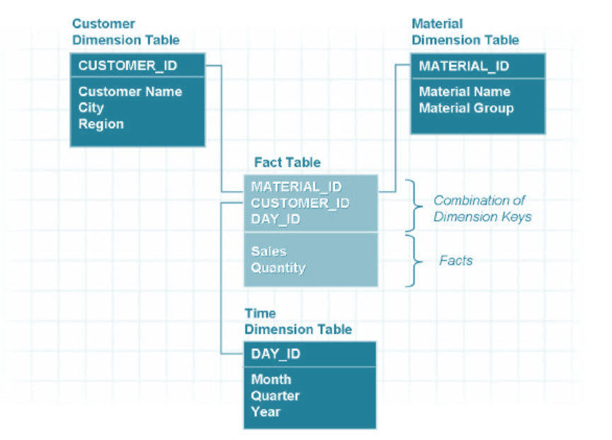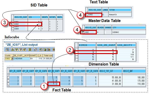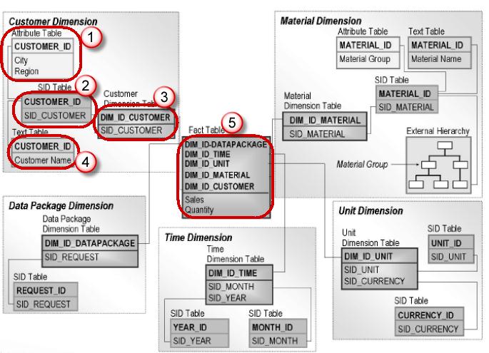 An InfoCube consists of several Info-Objects (Characteristics and Key figures) and is structured according to the star schema. This means that there is a large fact table with key figures for the InfoCube, as well as many dimension table surround it structure which appears like star.