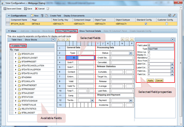 Web UI Configuration Tool supports drag-n-drop feature to add the fields to the layout