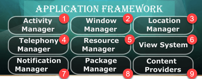 The Android OS exposes the underlying libraries and features of the Android device that are using a Java API. This is what is known as the Android framework. The framework exposes a safe and uniform means to utilize Android device resources.