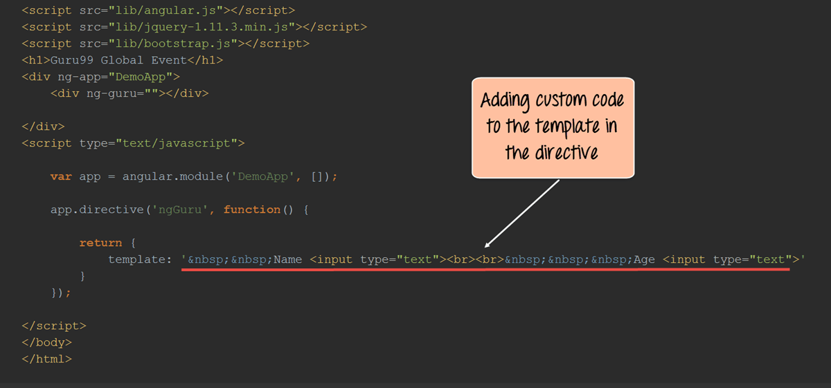 As we mentioned quite earlier, Angular is meant to extend the functionality of HTML. And we have already seen how we can have code injection by using custom re-usable directives.