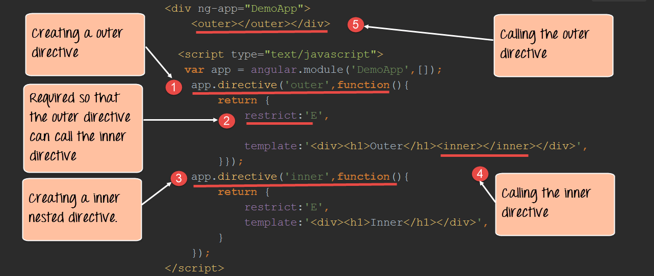 Directives in angular can be nested. Like just inner modules or functions in any programming language, you may need to embed directives within each other.