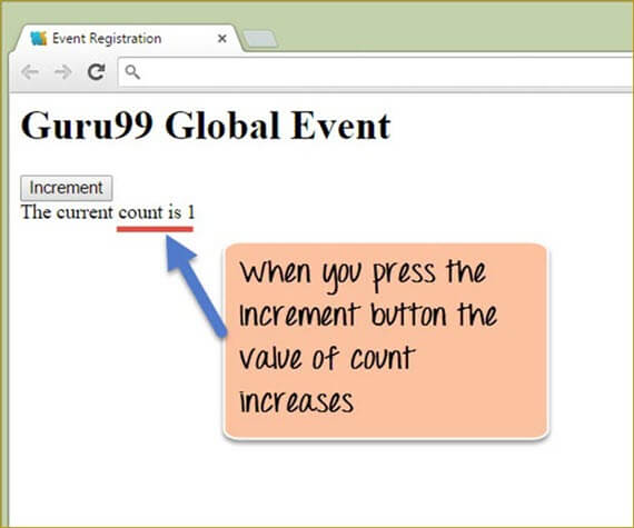 In this example, we will have a counter variable which will increment in value when the user clicks a button.