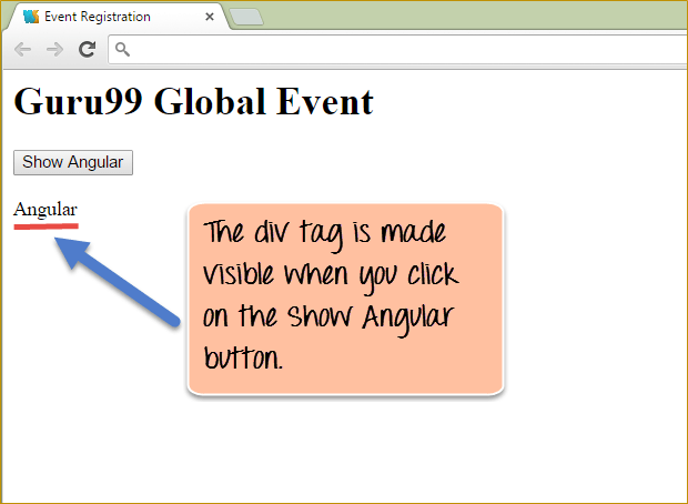 Let's look at an example of how we can use the "ngshow event" directive to display a hidden element.