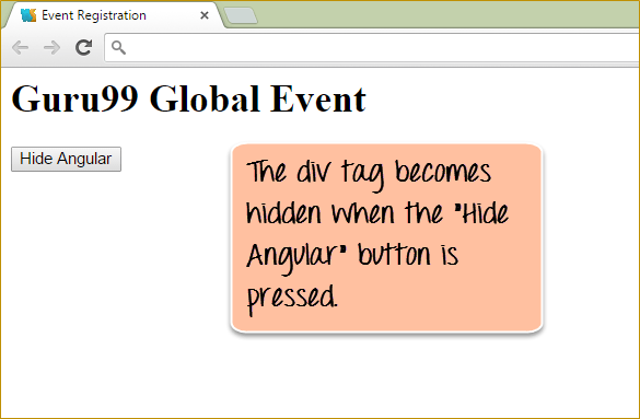 Let's look at the similar example as the one shown for ngShow to showcase how the ngHide attribute can be used.
