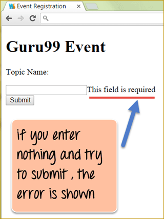We are just going to have a simple text field in which the user needs to enter a Topic name in the text box. If this is not done, a validation error will be triggered, and the error message will be shown to the user.