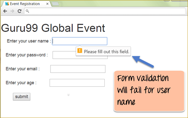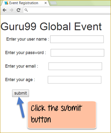In a real-world example, let's assume a site which requires a registration form to be completed before getting full access to this site. The registration page would have input fields for username, password, email id and so forth.