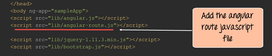 var app = angular.module('sampleApp',["ngRoute"]);