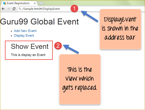 This will allow the corresponding view to be injected whenever the user clicks on either the "Add New Event link" or the "Display Event link."