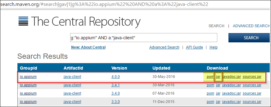 Before start writing APPIUM test with Maven, we have to download the JAR file from Maven central repository website.