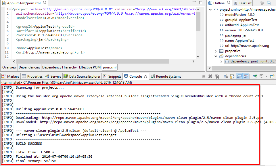 After configuring Maven plug-in Eclipse. It will be ready to test any android .apk application with Appium and Maven.