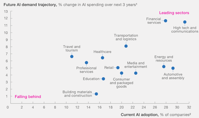 Nowadays, AI is used in almost all industries, giving a technological edge to all companies integrating AI at scale. According to McKinsey, AI has the potential to create 600 billions of dollars of value in retail, bring 50 percent more incremental value in banking compared with other analytics techniques. In transport and logistic, the potential revenue jump is 89 percent more.