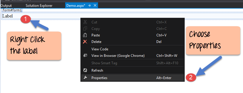 Step 1) The first step is to drag the 'label' control on to the Web Form from the toolbox as shown below.