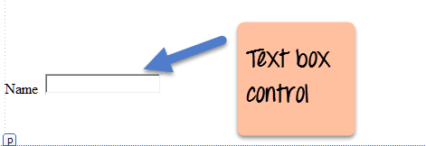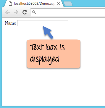 A text box is used for allowing a user to enter some text on the Web form application. Let's see how we can implement this with an example shown below. We will add one textbox to the form in which the user can enter his name.