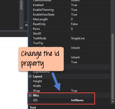 Step 2) Once the Textbox has been added, you have to change the ID property.