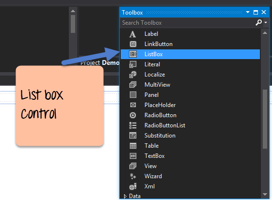 Step 1) The first step is to drag the list box control on to the Web Form from the toolbox as shown below