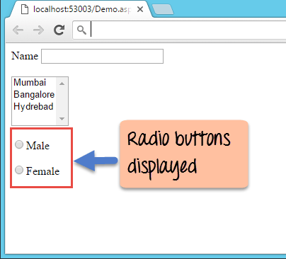From the output, you can clearly see that the radio button was added to the form