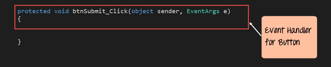 In web forms, you can add code to the corresponding aspx.cs file. This code can be used to perform certain actions when a button is pressed on the form. This is generally the most common event in Web Forms. Let's see how we can achieve this.