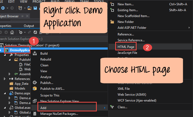 Step 1) Let's work on our DemoApplication. Let's add an HTML page to the application