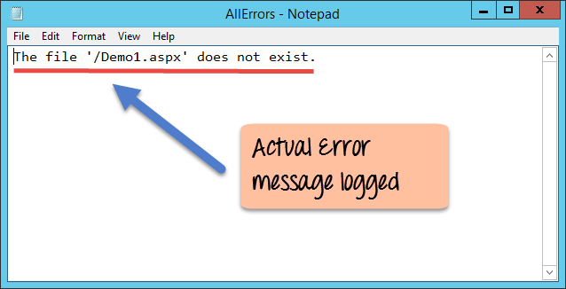 Browse the page http://localhost:53003/Demo1.aspx . Remember that Demo1.aspx does not exist in our application. You will then get the below output.