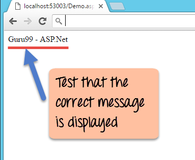 Let's consider the below web page. In the page, we have the message "gtupapers – ASP.Net" displayed. Now how can we confirm that the correct message is displayed when an ASP.Net project runs. This is done by adding a test project to the ASP.Net solution (used to develop web-based applications). This test project would ensure that the right message is displayed to the user.