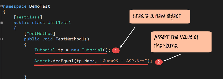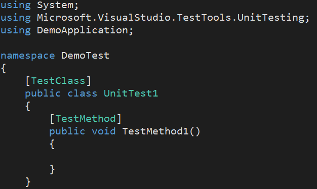 You will see the below code added by Visual Studio in the UnitTest1.cs file. This is the basic code needed for the test project to run.