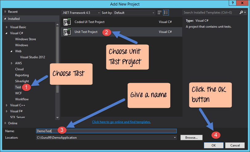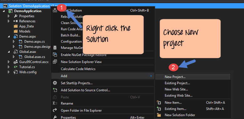Step 6) Now let's add our test project to the Demo Application. This is done with the help of Visual Studio.