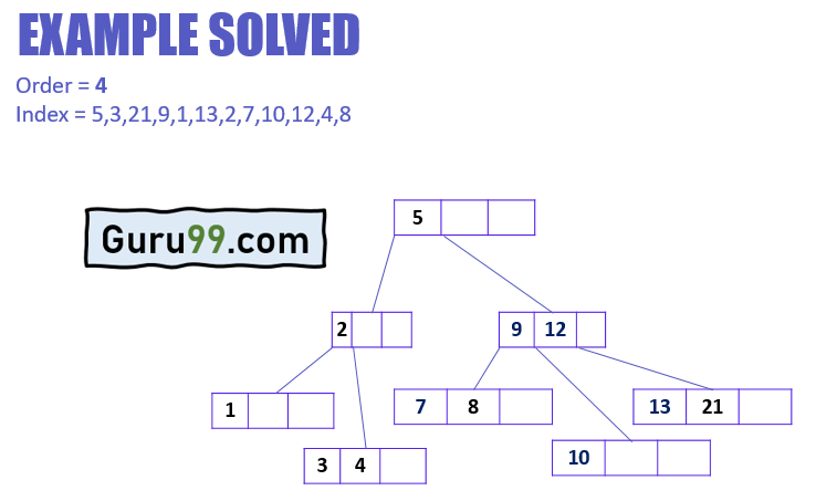 Similarly, based on the above rules and cases, the rest of the values can be inserted easily in the B Tree.