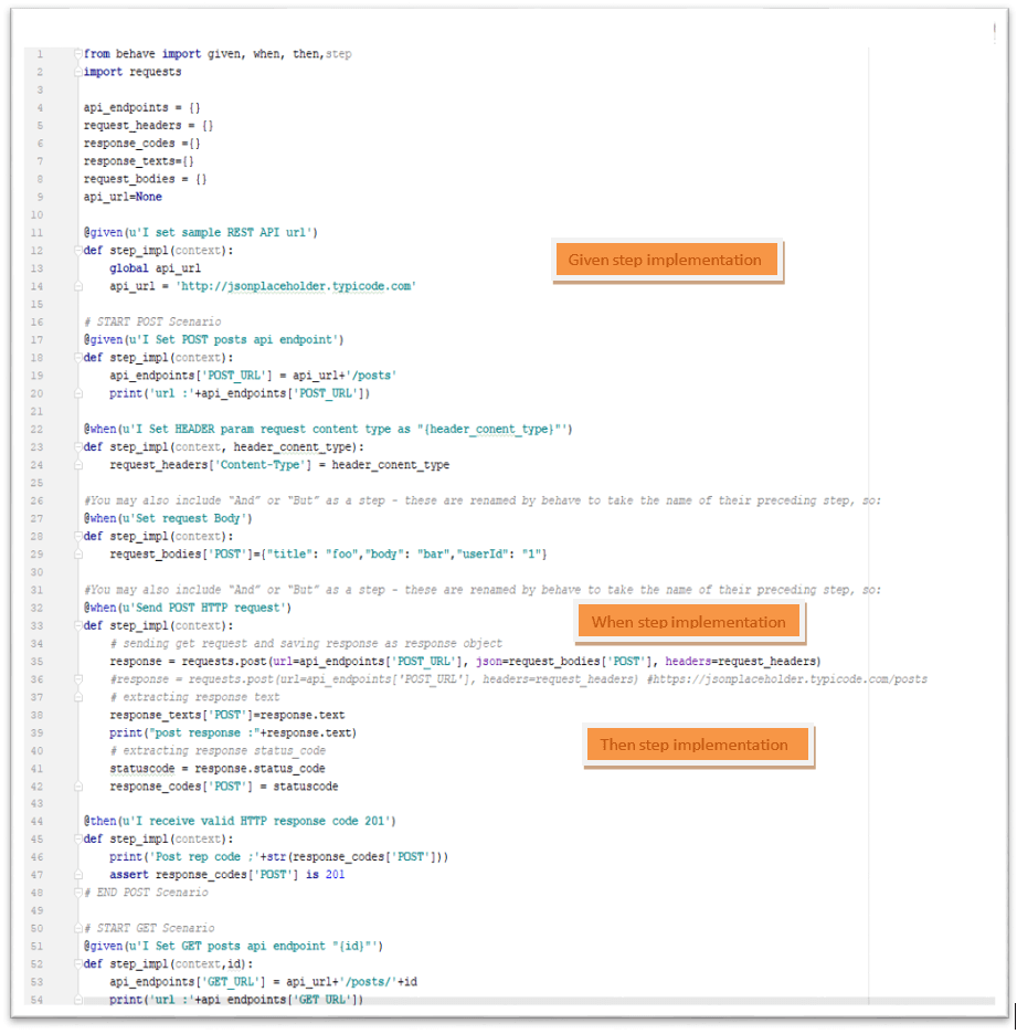 Now, for feature Steps used in the above scenarios, you can write implementations in Python files in the "steps" directory.