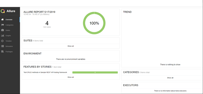 As users always prefer to see test results in a more readable and presentable format, let's have reports in HTML format with the help of Allure.