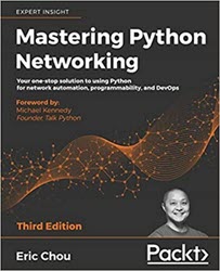 Mastering Python Networking is a book written by a group of writers: Eric Chou, Michael Kennedy, and Mandy Whaley. The book covers chapters on-network data analysis with ELK stack and Azure Cloud Networking. Every chapter is updated with the latest libraries with working examples.