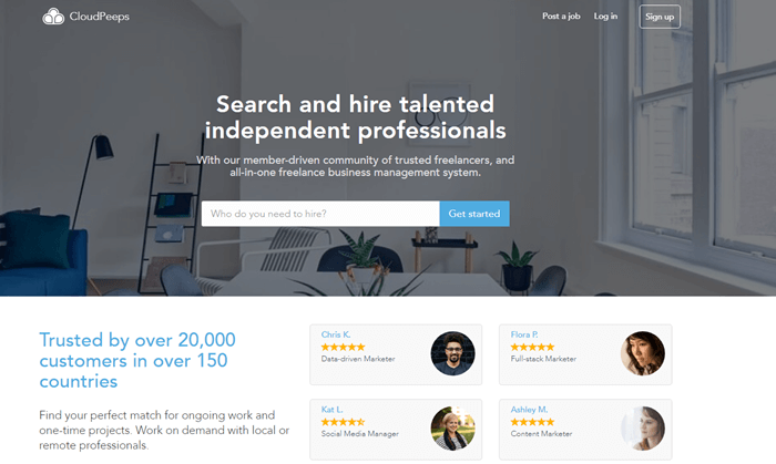 CloudPeeps web portal that focuses on general freelancing work related to marketing, copywriting, social media, email marketing, etc. It has more than thousand professionals who are working as a freelancer. This site allows you to work remotely.