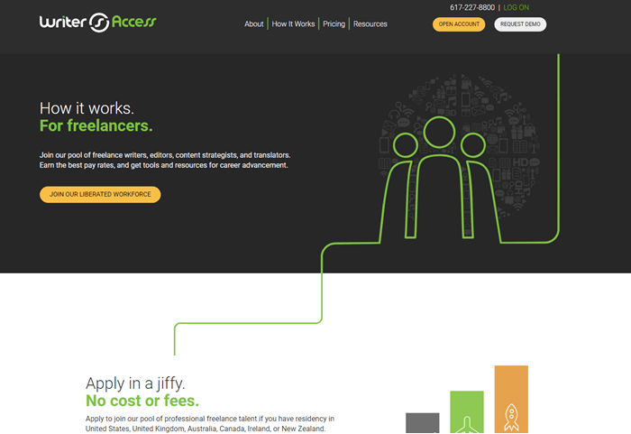 Writer Access is a pool of freelance editors, writers, content strategists, as well as translators. People living in United States, Australia, Canada, Ireland, United Kingdom, etc. can work for clients. You can receive payment based on research needed and project complexity. If you are a beginner, then this company will offer free content marketing training.