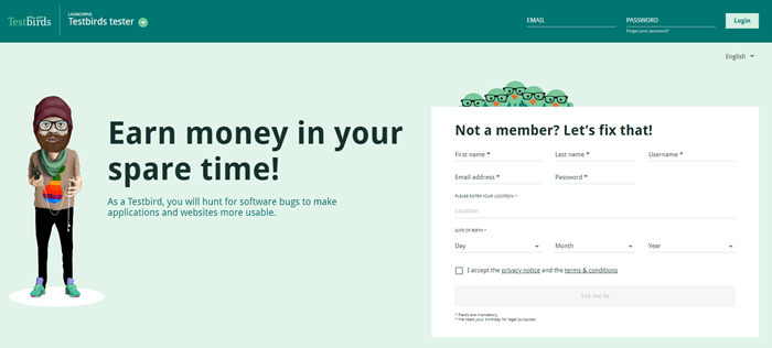 Testbirds is a site that allows you to get a job related to a website or app test report you will get additional payment for detecting a bug. This freelance website allows you to choose to test during the daytime or at night.