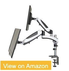 | Dual Monitor Stands | ![]() VIVO Dual LCD Monitor Desk Mount Stand | Monitor Size Supported: 13" - 27" Weight Supported: 22 lbs Lift: 22.8" Tilt: 90° forward 180° backward Swivel/Pan (degrees): 180 Rotation (degrees): 360 | Check Price |