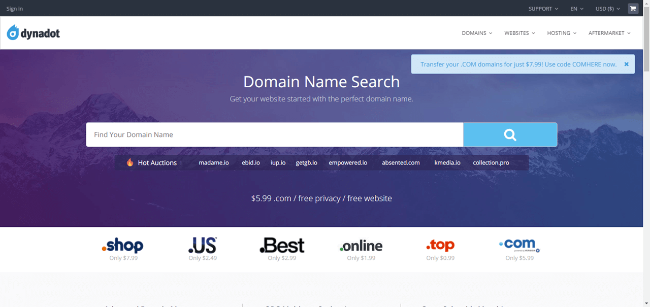 Dynadot provides a solid marketplace where you can do just that. You can bid on domains up for auction, browse domains for sale, list your domain for sale, or put a domain on backorder so you can snag it if it becomes available.