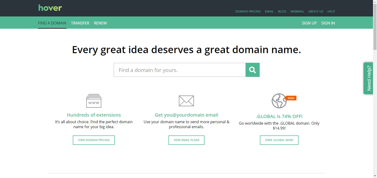 Hover is ideal domain name generator for businesses that need help choosing the best domain name registrar, perhaps the domain name you wants to use might be taken. Most registrars will suggest domain options, but Hover offers the best recommendations for you.