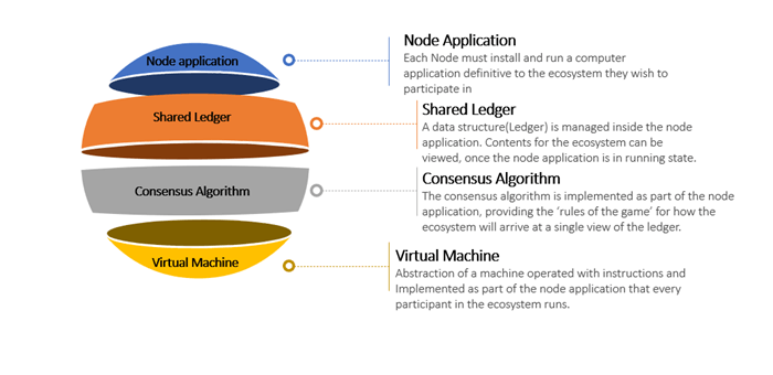 Abstraction of a machine operated with instructions and Implemented as part of the node application that every participant m the ecosystem runs.