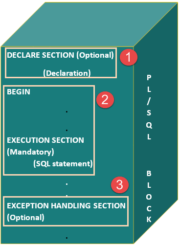 PL/SQL blocks have a pre-defined structure in which the code is to be grouped. Below are different sections of PL/SQL blocks.