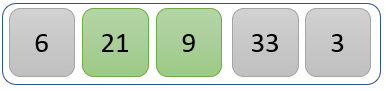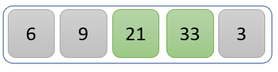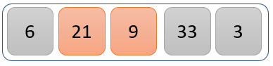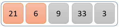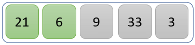 21 is greater than 6, so 21 takes the position occupied by 6 while 6 takes the position that was occupied by 21