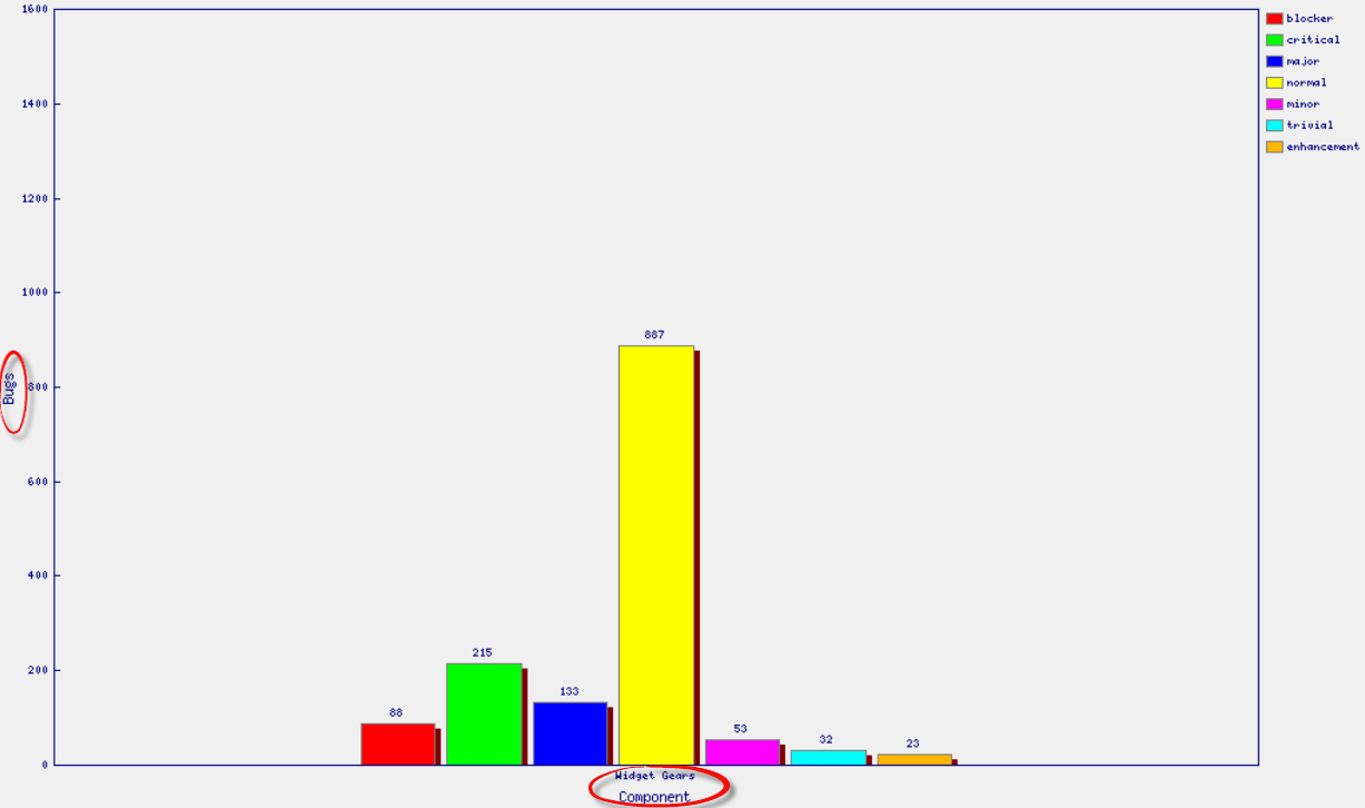 The graph below shows the Bar chart representation for the Bugs severity in component "Widget Gears". In the graph below, the most severe bug or blockers in components are 88 while bugs with normal severity are at the top with 667 number.