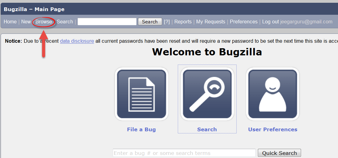 Step 3) You are successfully logged into Bugzilla system