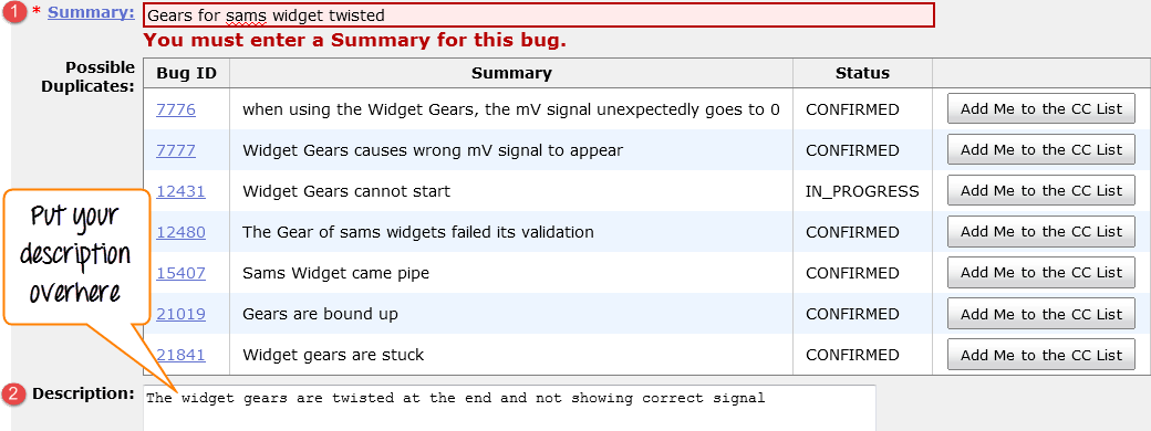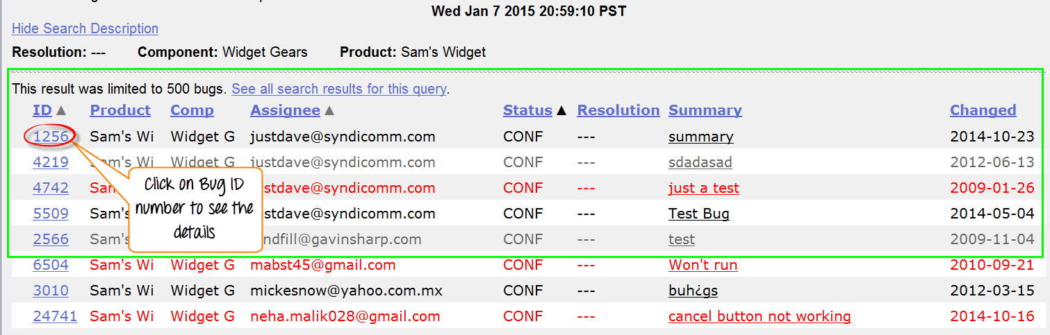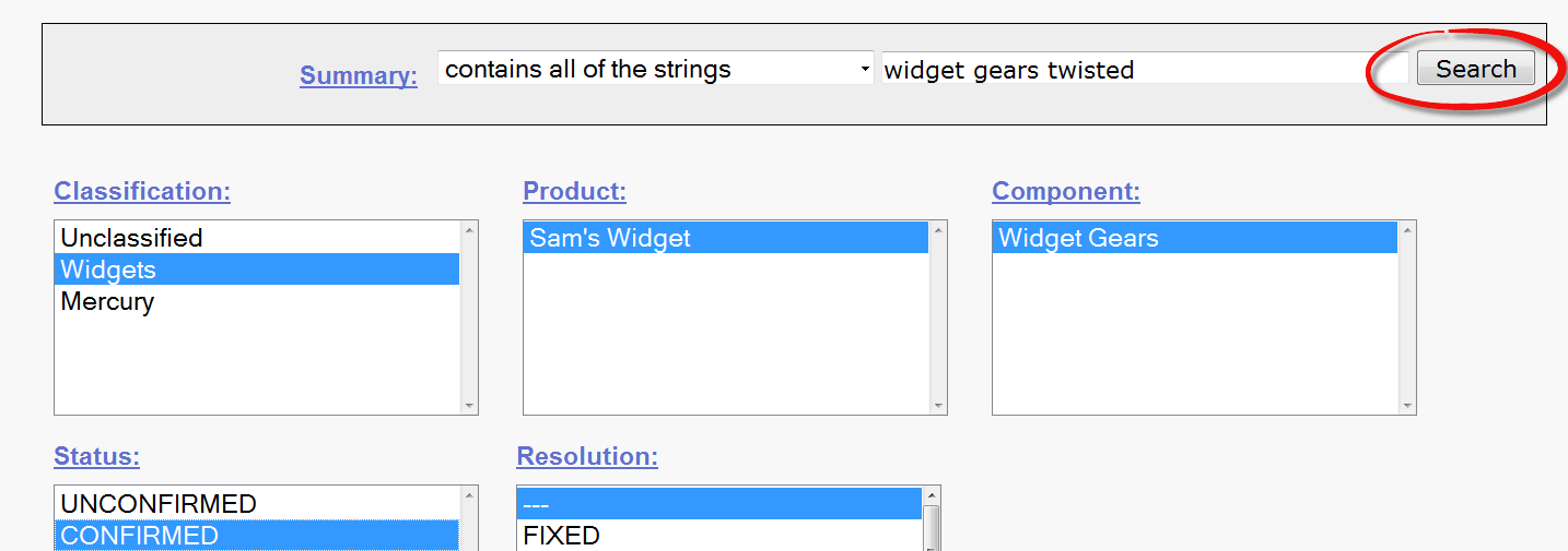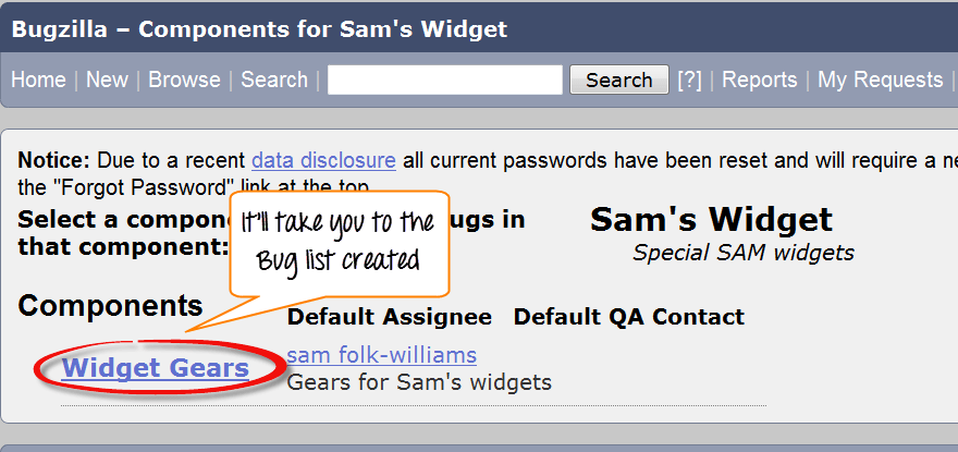 Step 3) It opens another window, in this click on component "widget gears". Bugzilla Components are sub-sections of a product. For instance, where our product is SAM'S WIDGET whose component is WIDGET GEARS.