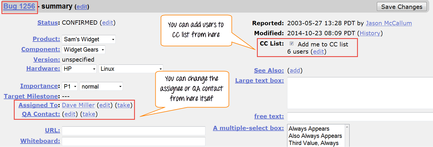 It will open another window, where information about your bug can be seen more in detail. In the same window, you can also change the assignee, QA contact or CC list.