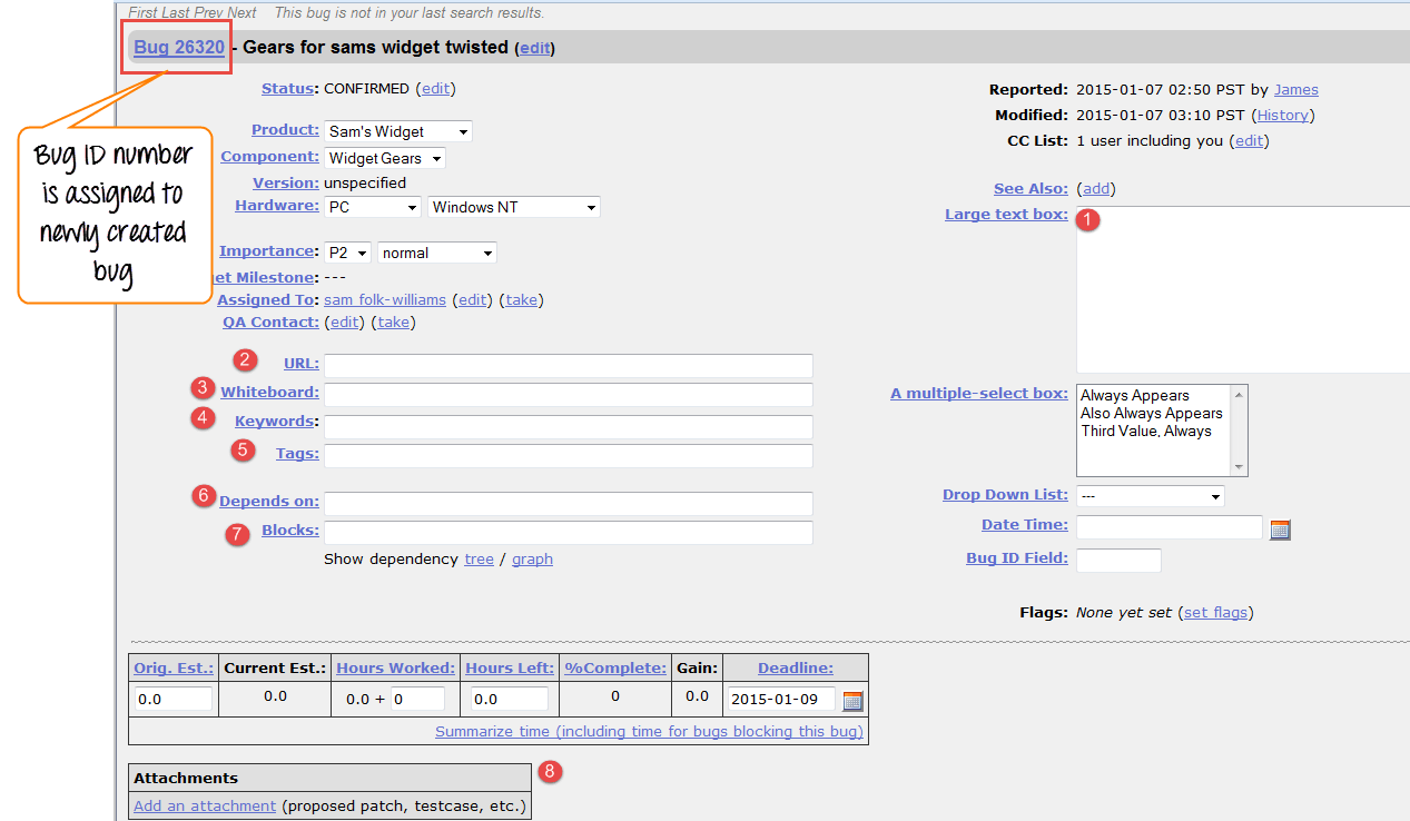 NOTE: The above fields will vary as per your customization of Bugzilla