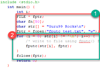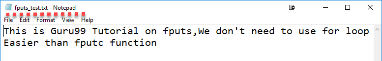 The above program writes a single character into the fputc_test.txt file until it reaches the next line symbol "\n" which indicates that the sentence was successfully written. The process is to take each character of the array and write it into the file.