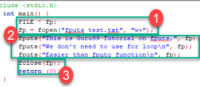 fputs("This is gtupapers Tutorial on fputs,", fp);