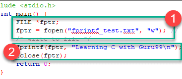 fptr = fopen("fprintf_test.txt", "w"); // "w" defines "writing mode"