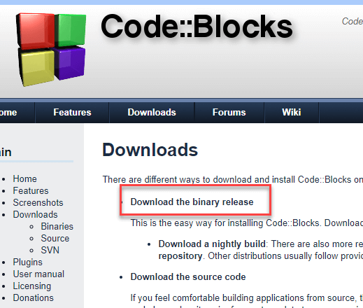 Step 1) Go to http://www.codeblocks.org/downloads and click Binary Release.